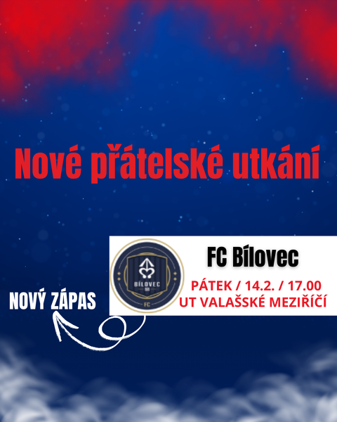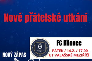 Do přípravných zápasů přibylo utkání proti FC Bílovec. Zápas se odehraje v pátek 14.2.2025 od 17.00 hod. na naší umělé trávě.