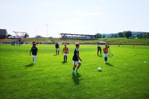 Více než 100 dětí si našlo cestu tento týden na letní stadion ve Valašském Meziříčí na náš fotbalový kemp. Děti jsou rozděleny do celkem šesti skupin podle barev: