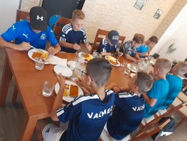 Dnes naše hráče čekal dopolední trénink pod dohledem trenérů z klubu FC Zlín, kterému takto mnohokrát děkujeme. Následoval chutný oběd v restauraci na Štěpánově a pokračovali jsme další porcí fotbalové zábavy, kterou děti zakončily skotačením na letním koupališti. O spokojenost všech zúčastněných se stará pan Aleš Nauš, který má pro děti vždy nachystané čerstvé ovoce nebo rychlou svačinku.
