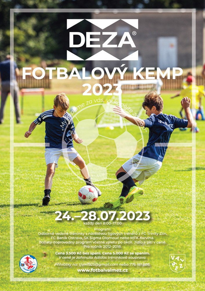 Bližší a aktuální informace jsou uvedeny na stránkách kempu: https://www.fotbalvalmez.cz/deza-fotbalovy-kemp-072023
