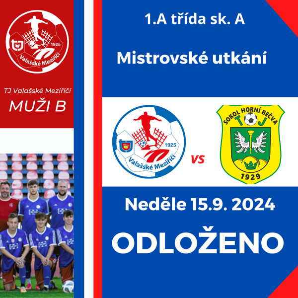 Všechny mistrovské utkání našich týmů jsou odloženy kvůli nepříznivému počasí