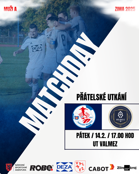 TJ Valašské Meziříčí "A" - FC Bílovec, pátek 14.02.2025, 17:00 hod., UT Valašské Meziříčí